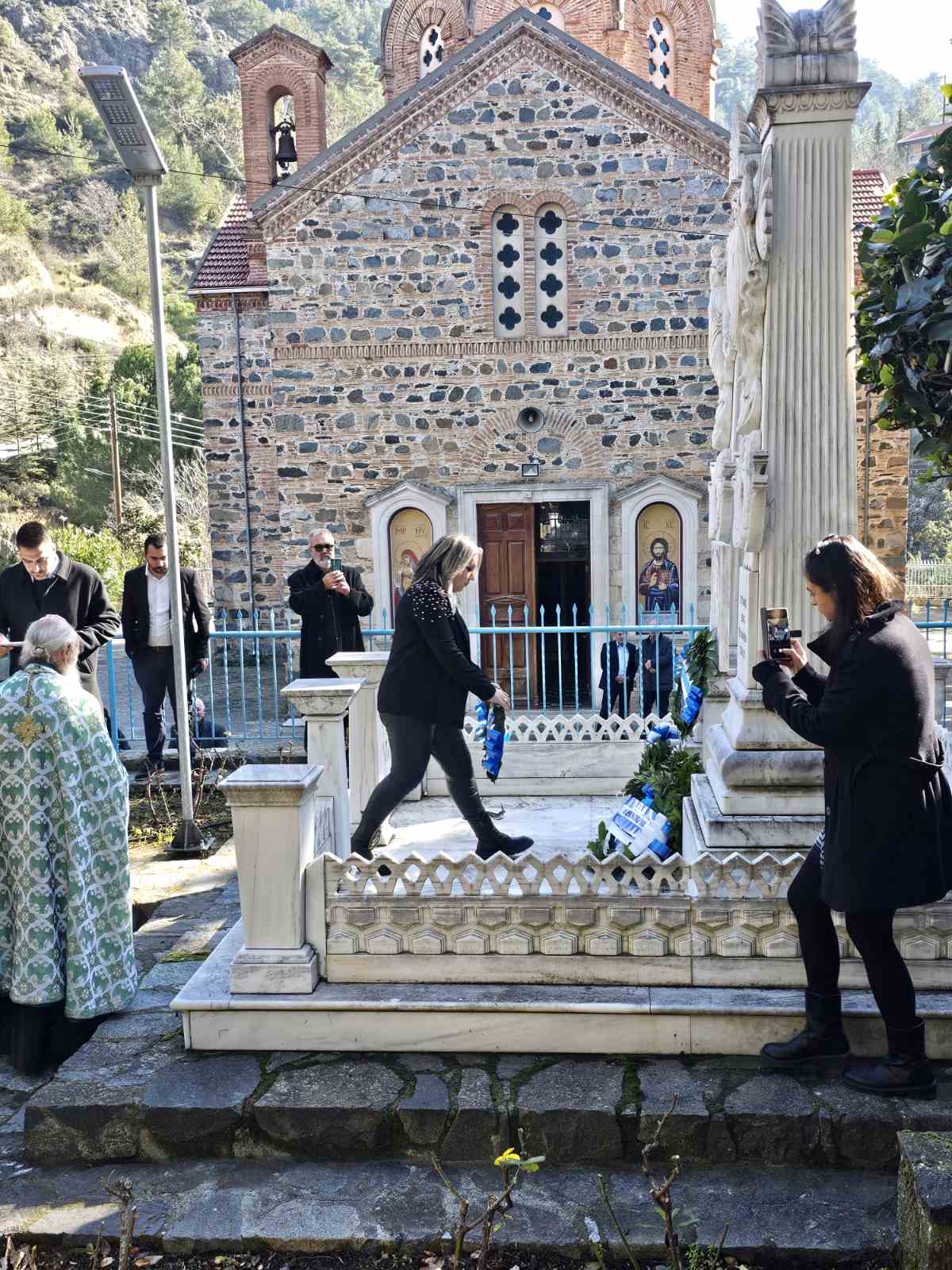 Εκ μέρους του Προέδρου του Ε.ΛΑ.Μ. Χρίστου Χρίστου στεφάνι κατέθεσε η συναγωνίστρια Έλενα Σταυρινίδου.